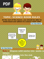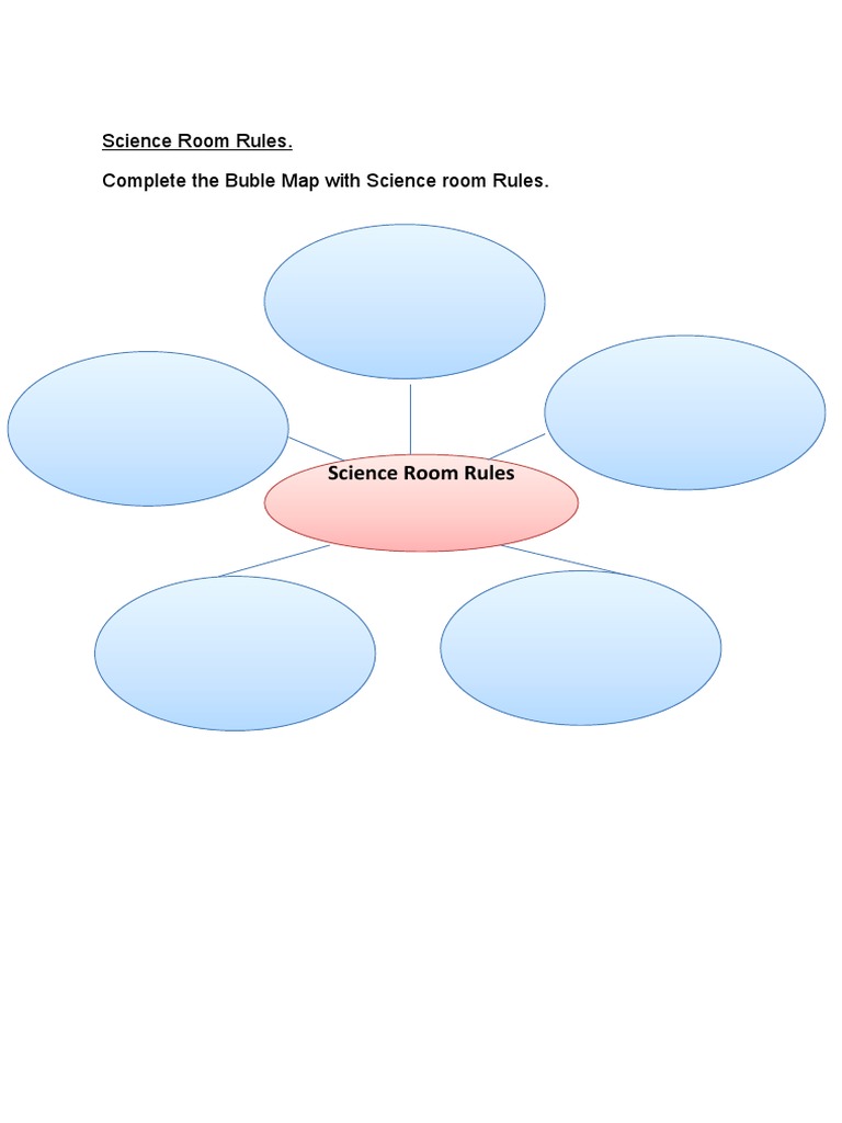 Students must complete a bubble map with the science room rules which include keeping the science room clean and organized, following all instructions from the teacher carefully, and being respectful of others at all times.
