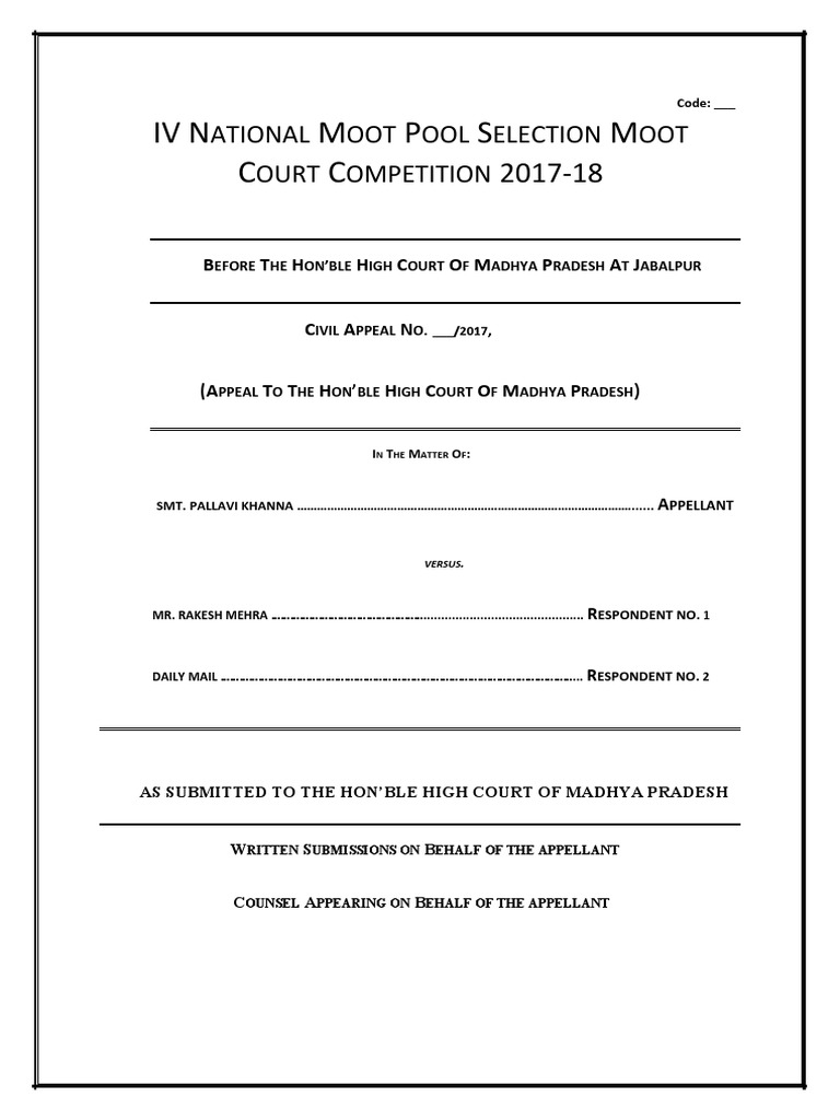 (APPEAL TO THE HON’BLE HIGH COURT OF MADHYA PRADESH)