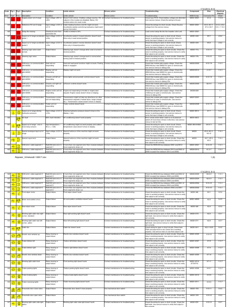 301 Redundant voltage too low Input voltage <20V or Module excitation voltage is too low and module might Contact maintenance for troubleshooting. Check fuse F534 & F535. Check the wiring to the pin. MOD3:D512 K1.9 11.5.12