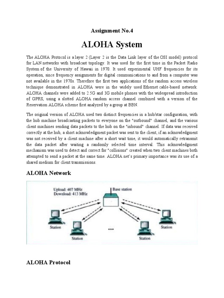 technique demonstrated in ALOHA were in the widely used Ethernet cable-based network.
