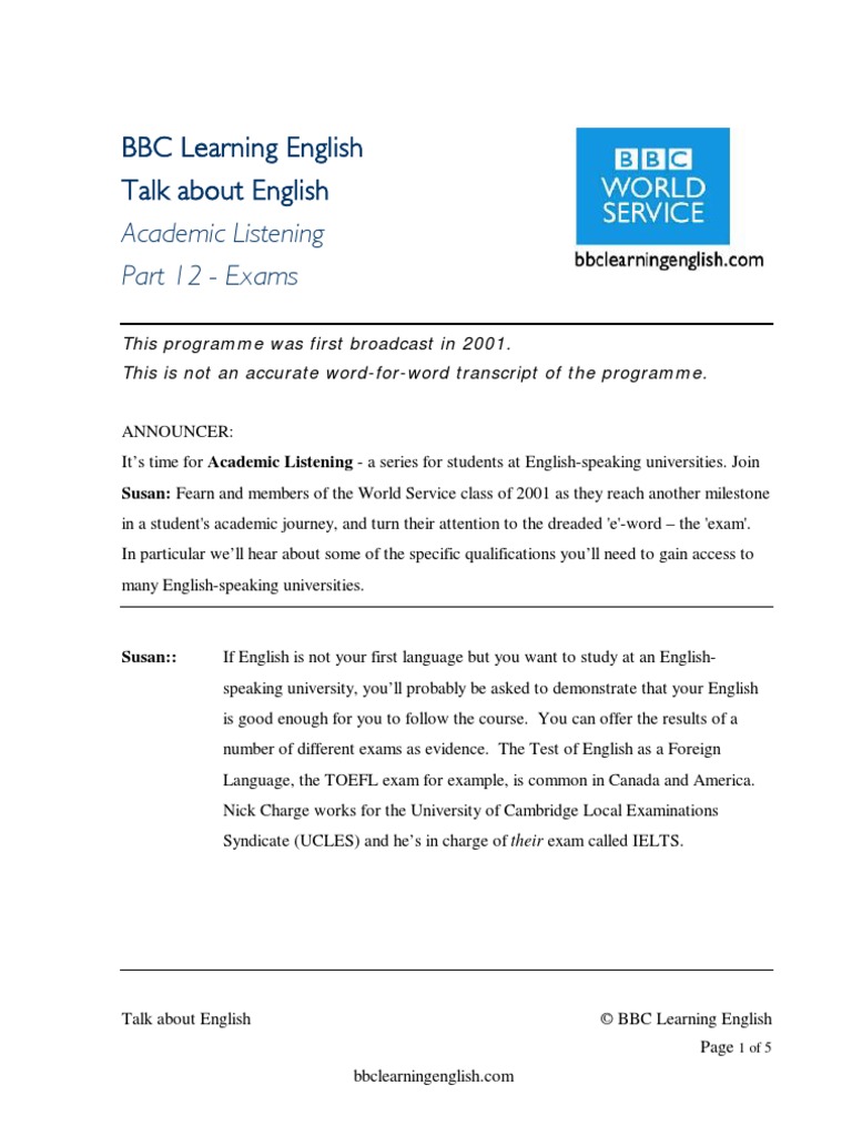 Susan: IELTS, like the other exams, can be used by universities and Colleges of