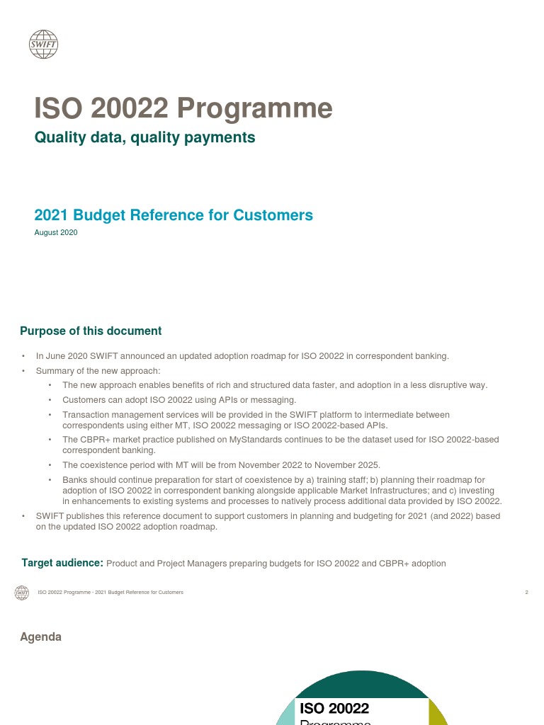 ISO 20022 Programme - 2021 Budget Reference for Customers