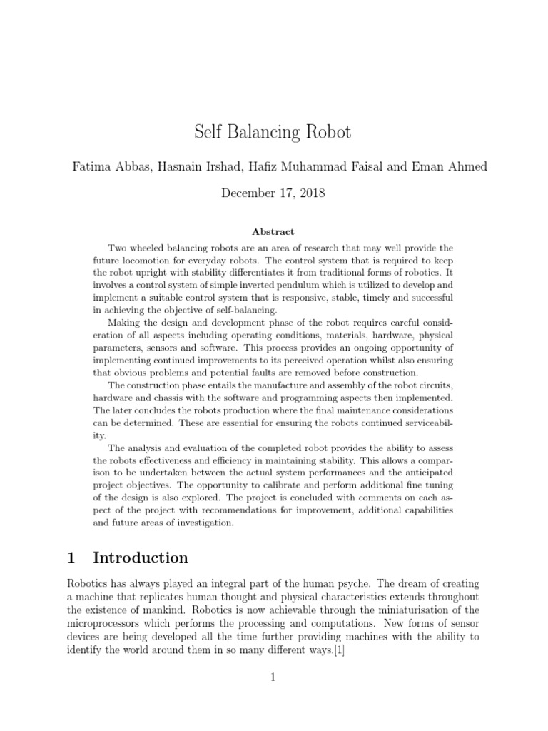 [1] Balasubramanian, Siddhartha and Lathiff, Nabil. ”SELF BALANCING