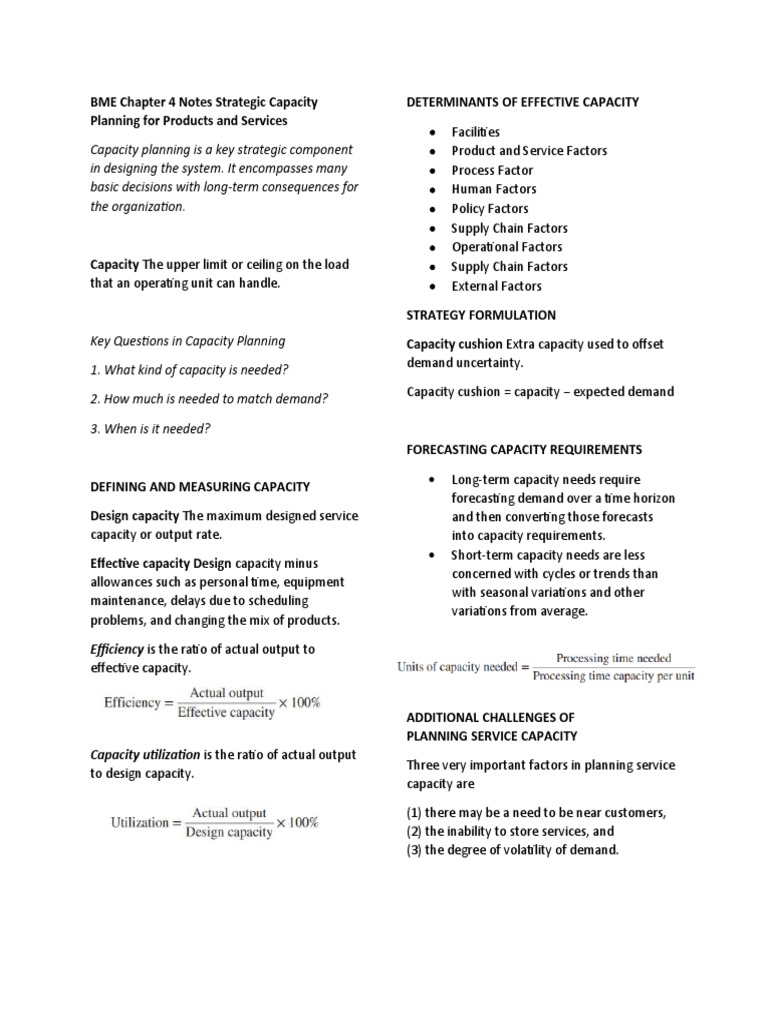 BME Chapter 4 Notes Strategic Capacity DETERMINANTS OF EFFECTIVE CAPACITY