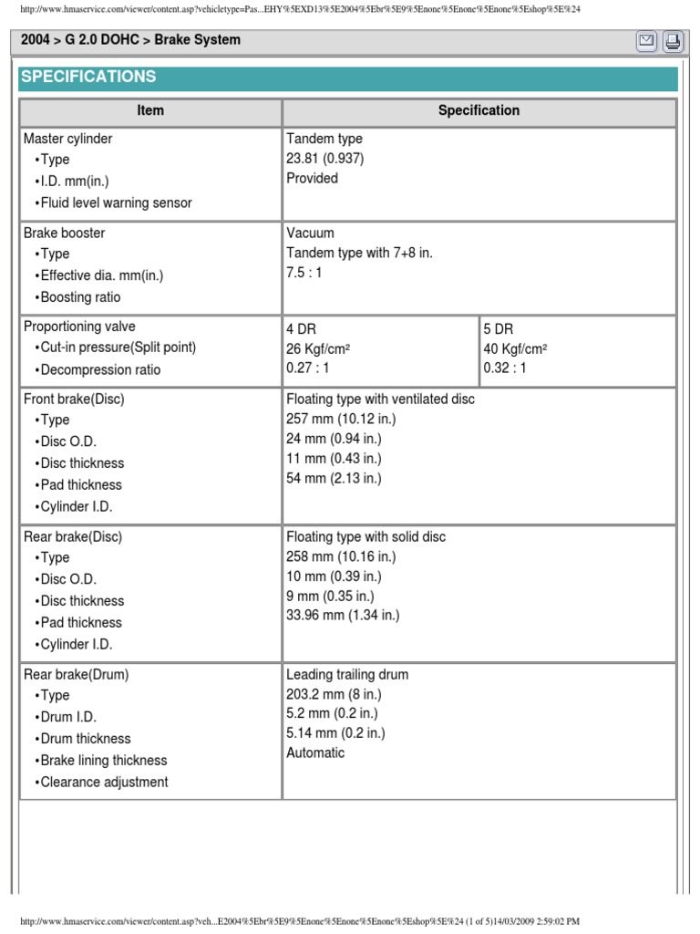 2004 > G 2.0 DOHC > Brake System