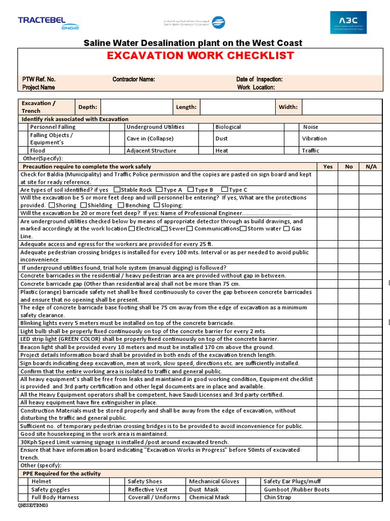 All heavy equipment’s shall be free from leaks and maintained in good working condition, Equipment checklist