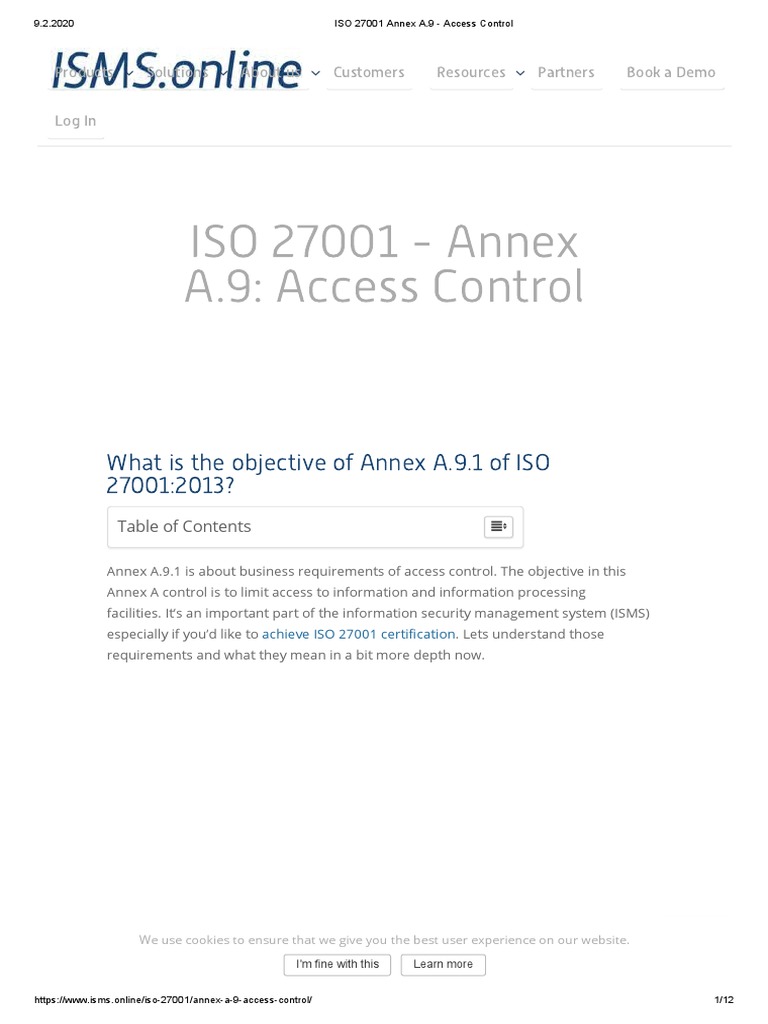 9.2.2020 ISO 27001 Annex A.9 - Access Control