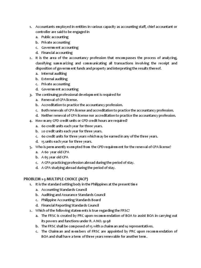 PROBLEM 1-3 MULTIPLE CHOICE (ACP)