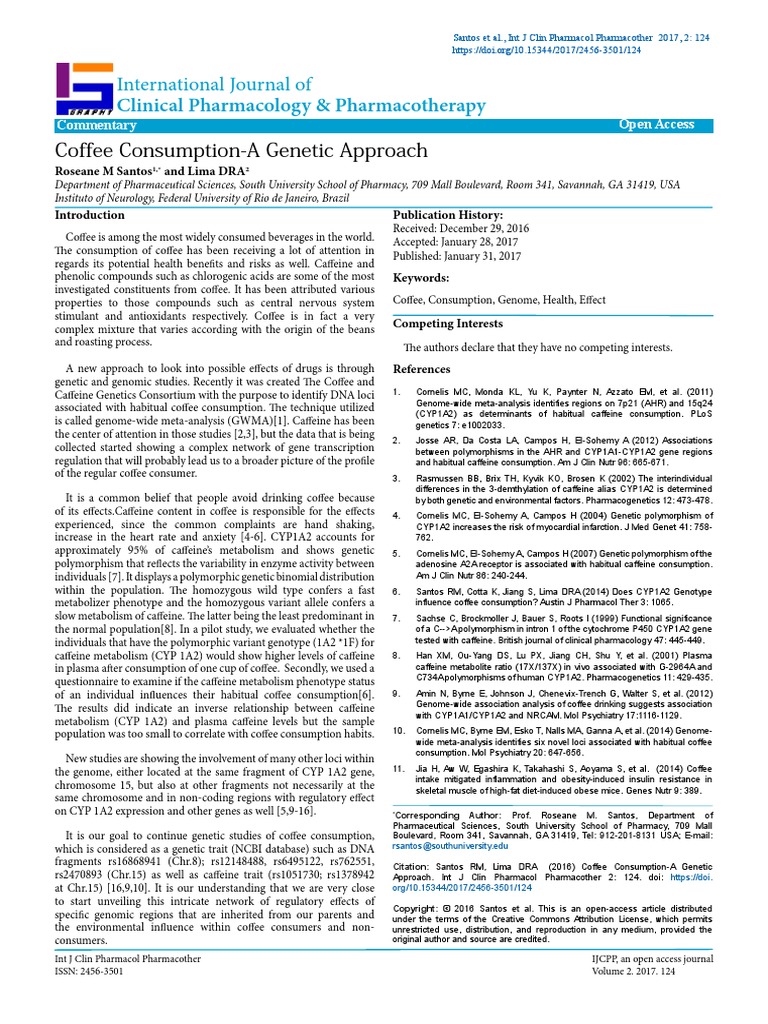 Citation: Santos RM, Lima DRA (2016) Coffee Consumption-A Genetic Approach. Int J Clin Pharmacol Pharmacother 2: 124. doi: [Link]