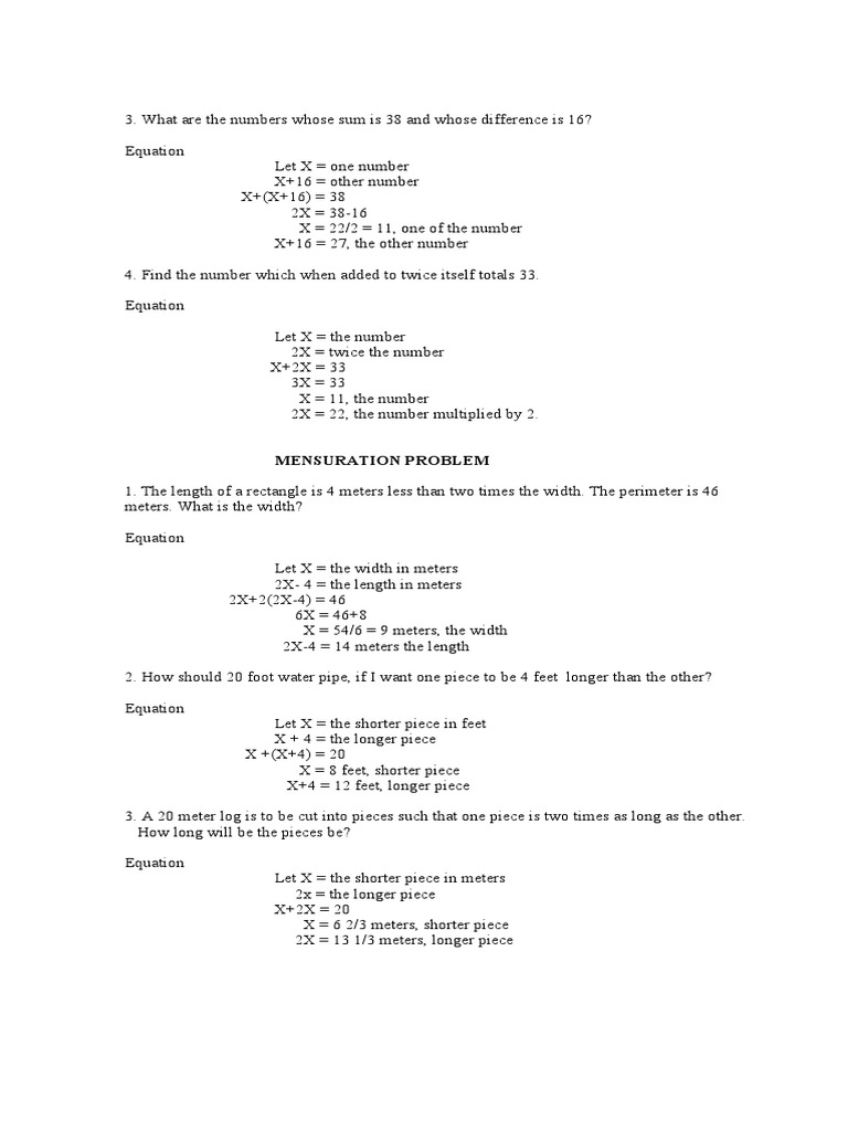 1. The length of a rectangle is 4 meters less than two times the width. The perimeter is 46