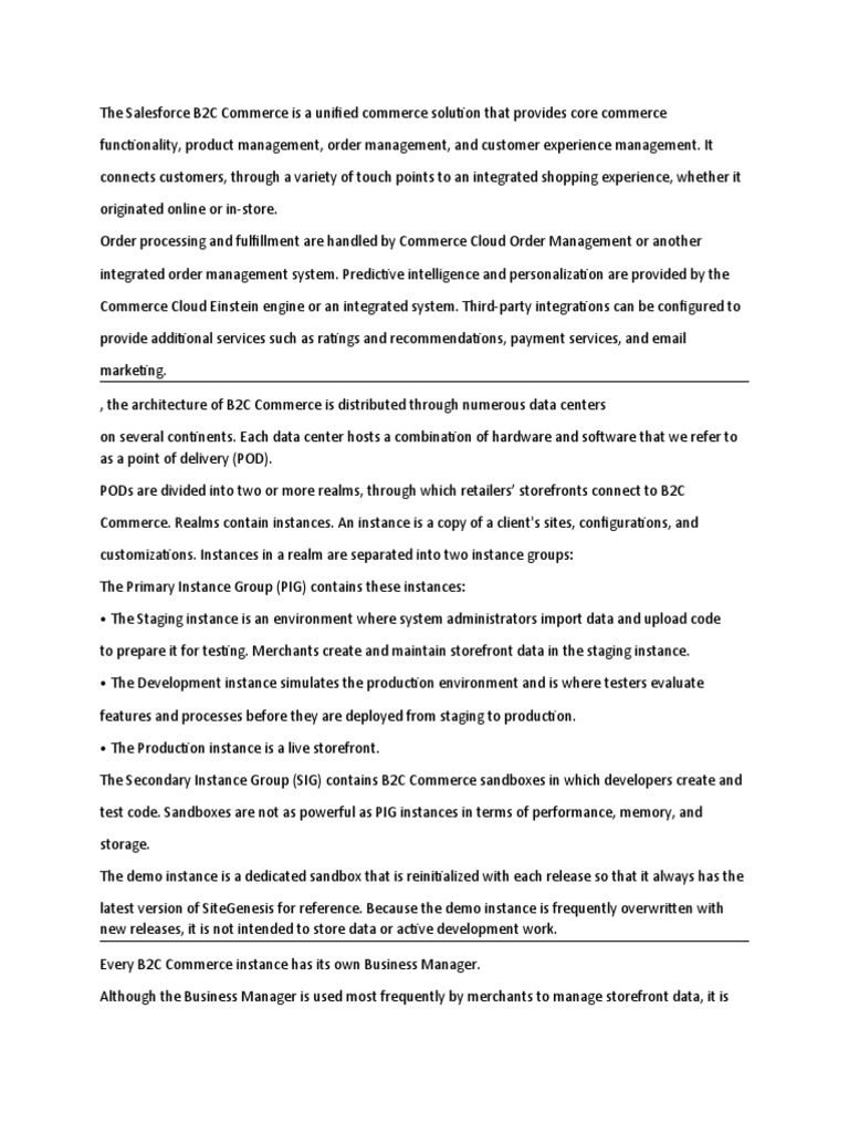 The Salesforce B2C Commerce is a unified commerce solution that provides core commerce