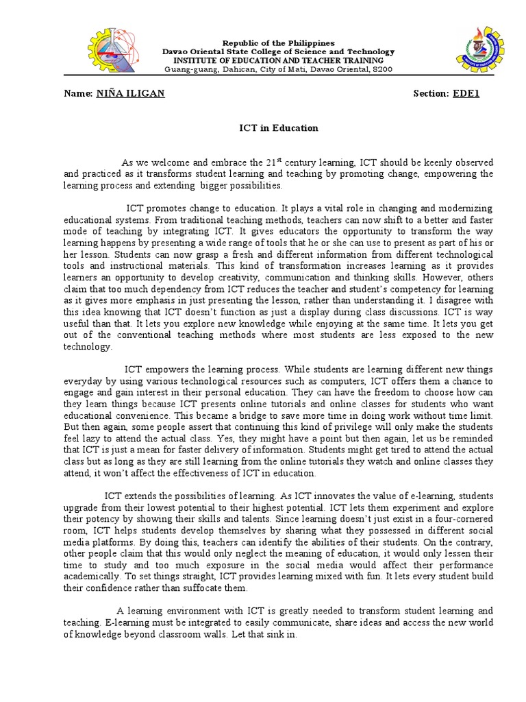 academically. To set things straight, ICT provides learning mixed with fun. It lets every student build