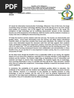 ICT promotes change to education. It plays a vital role in changing and modernizing