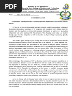 that ICT is just a mean for faster delivery of information. Students might get tired to attend the actual