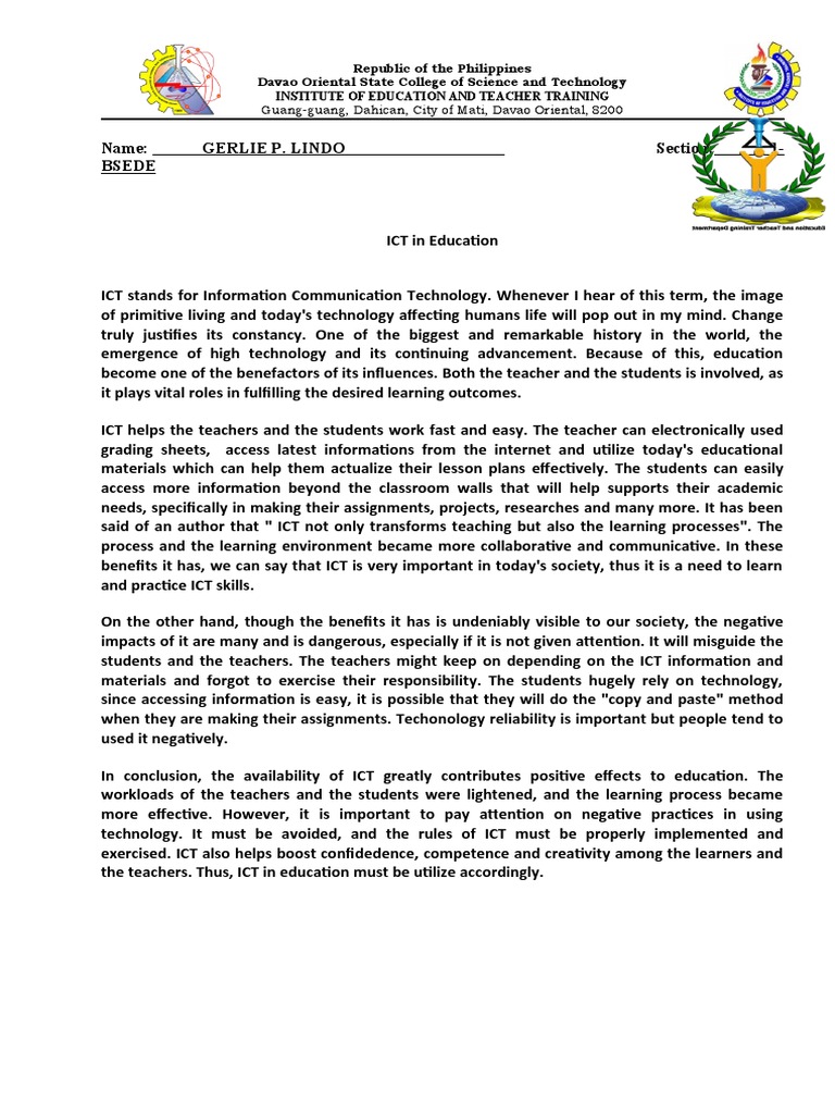 the teachers. Thus, ICT in education must be utilize accordingly.
