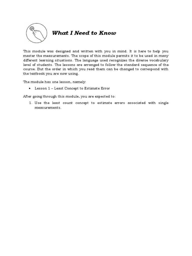 1. Use the least count concept to estimate errors associated with single