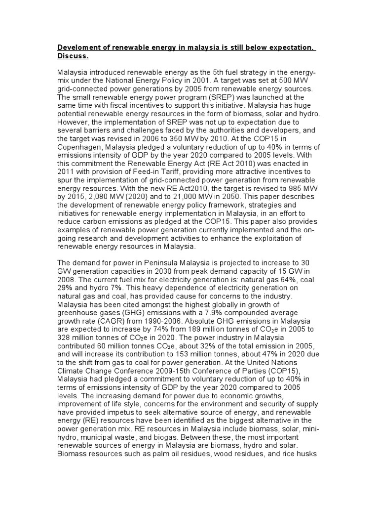 Malaysia introduced renewable energy as the 5th fuel strategy in the energy-