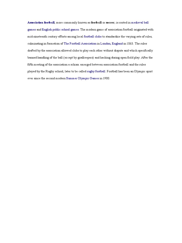 Association football, more commonly known as football or soccer, is rooted in medieval ball