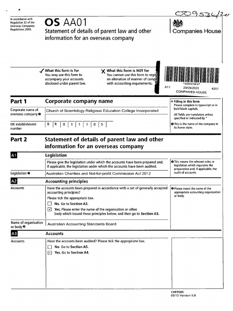 Scientology in the UK's annual financial disclosure
