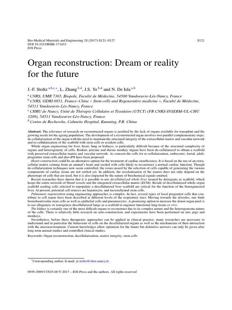S122 J.-F. Stoltz et al. / Organ reconstruction: Dream or reality for the future