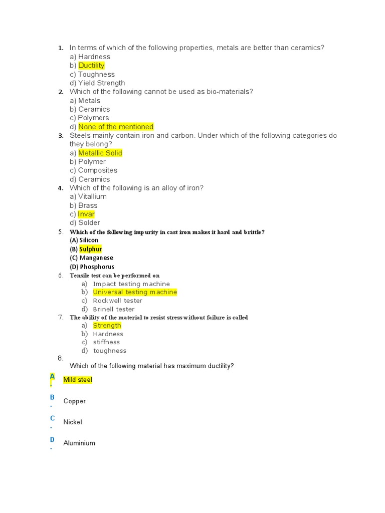 3. Steels mainly contain iron and carbon. Under which of the following categories do