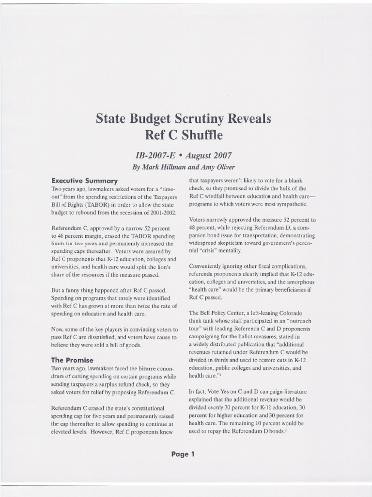 Lawmakers asked voters for a "timeout" from the spending restrictions of the Taxpayers Bill of Rights. John sutter: voters have cause to believe they were sold a bill of goods. He says some of the key players in convincing voters to pass Referendum C are dissatisfied.