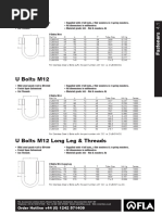 U-bolts are available in various sizes from 20mm to 150mm in diameter. They are made of steel and zinc plated blue. The document provides the specifications for 10 different U-bolt sizes, including their nominal diameter in both millimeters and inches as well as dimensions for the bolt, washer, and hole. DIN 3570 B u-bolts are also available upon request.