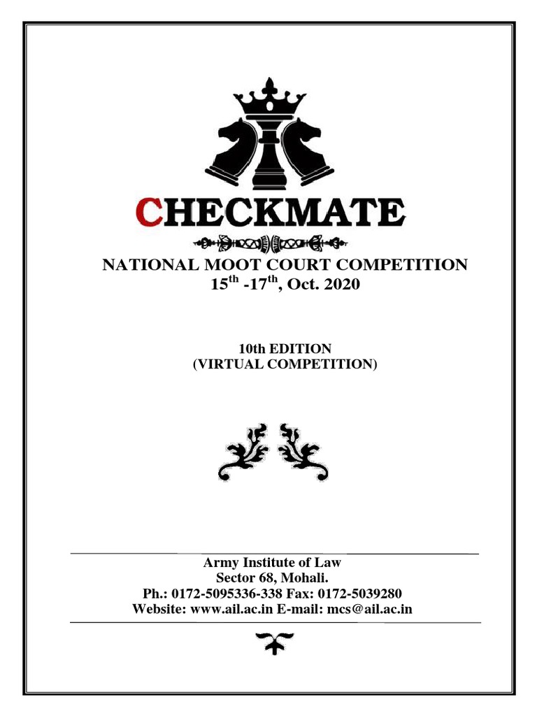 The Checkmate 2020 - Army Institute of Law National Moot Court Competition will be