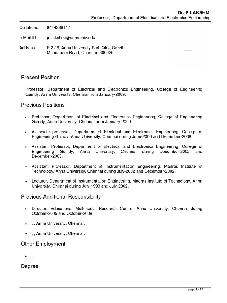 e-Mail ID : p_lakshmi@annauniv.edu