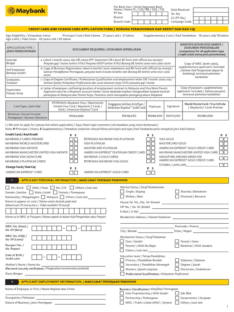 Maybank employee name and employee ID: Maybank employee signature: Date: