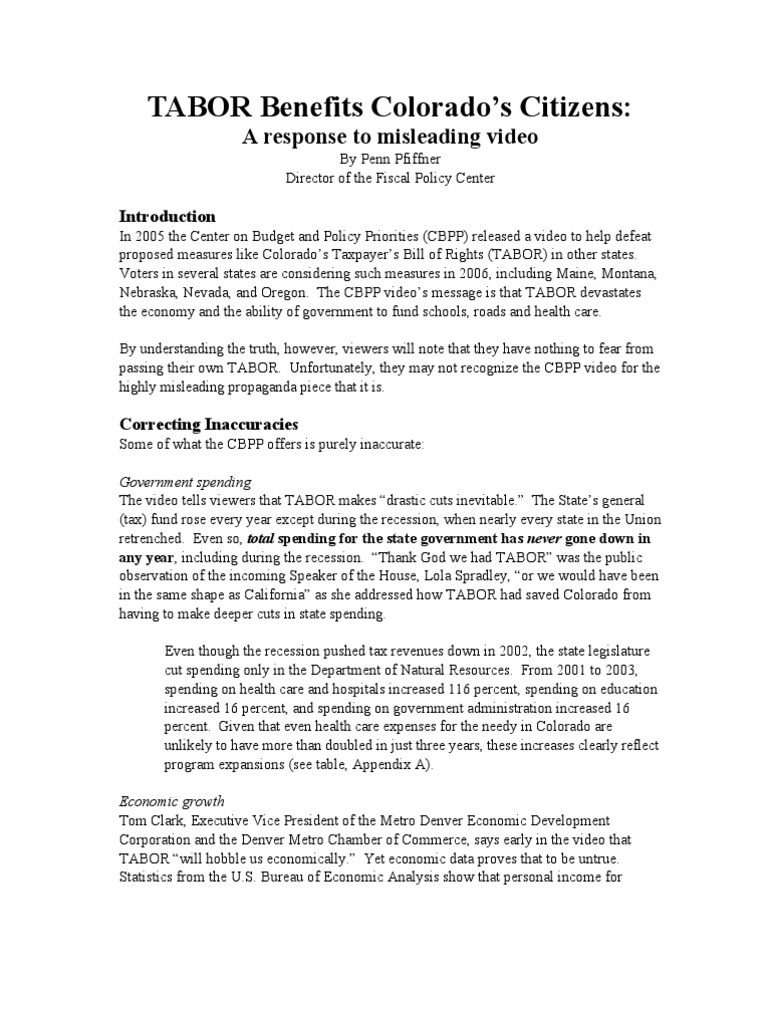 The CBPP video discusses TABOR in a vacuum and disregards other important measures