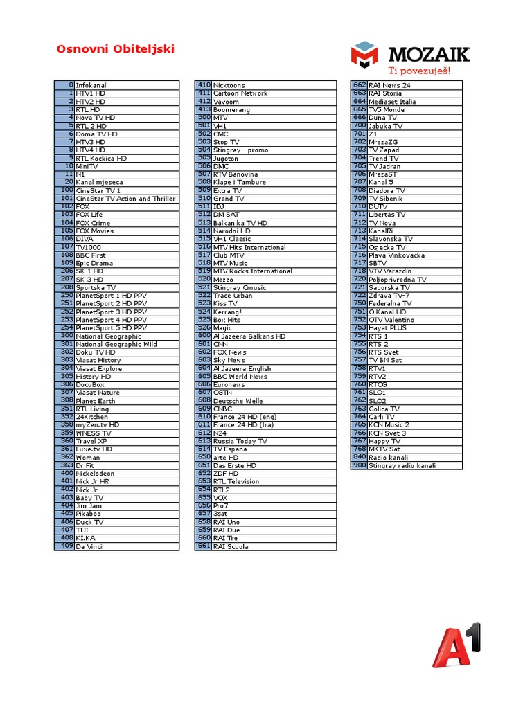 206 SK 1 HD 519 MTV Rocks International 718 VTV Varazdin