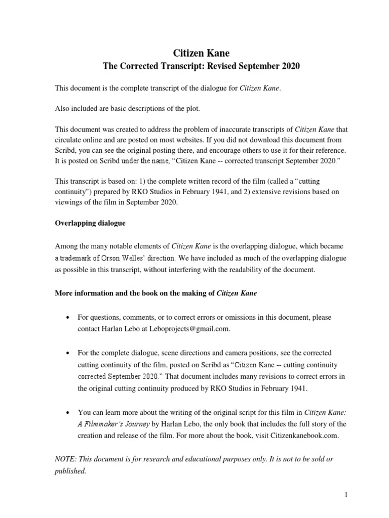Citizen Kane -- corrected transcript September 2020