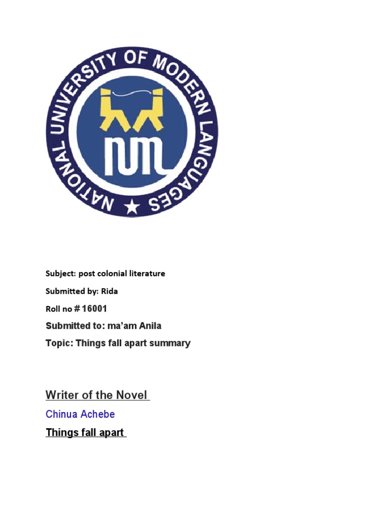book about Okonkwo…)Things Fall Apart ends with the revelation of the