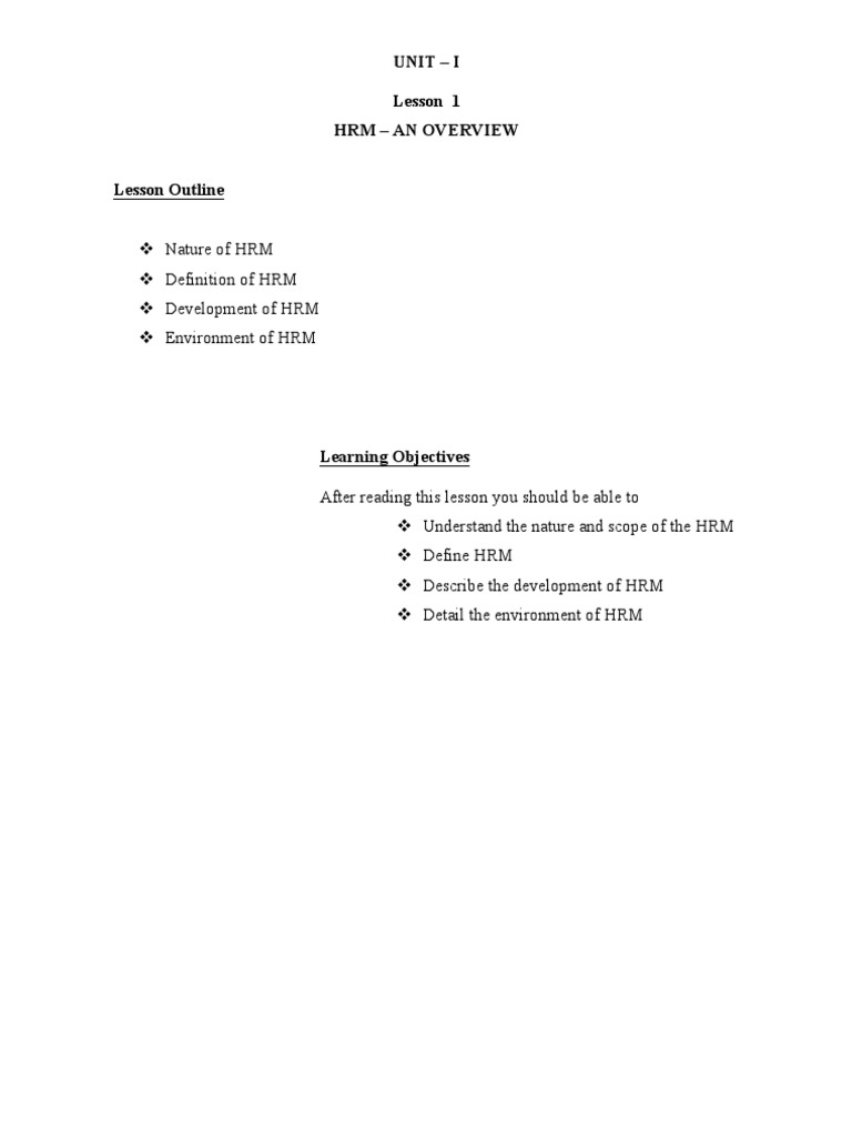 Overview of Human Resource Management