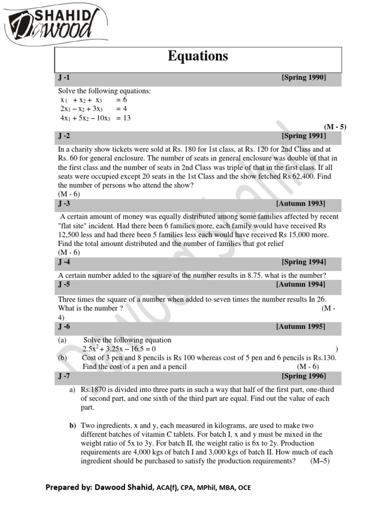 Prepared by: Dawood Shahid, ACA(f), CPA, MPhil, MBA, OCE