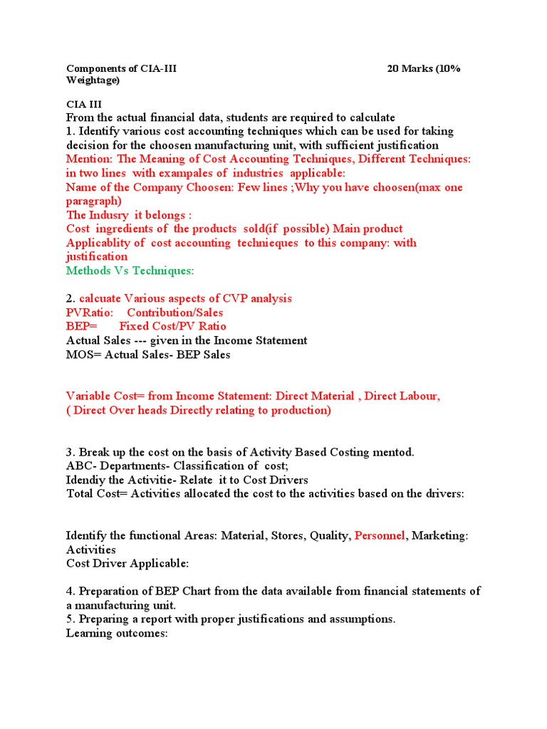 1. Identify various cost accounting techniques which can be used for taking