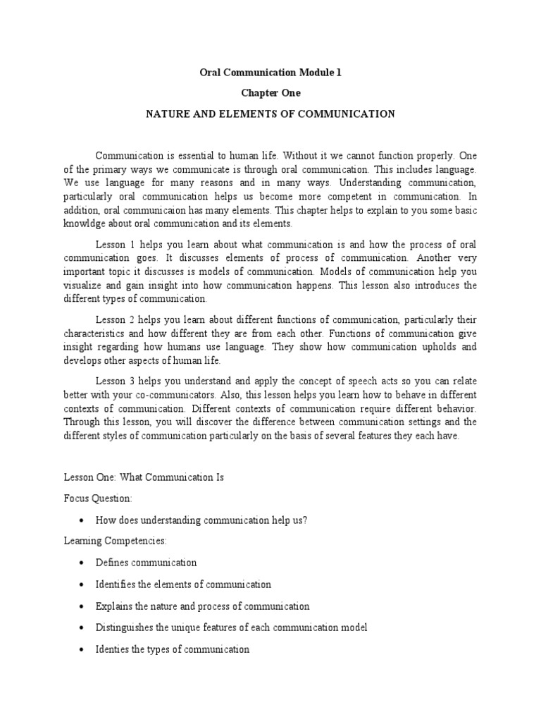 Lesson 1 helps you learn about what communication is and how the process of oral