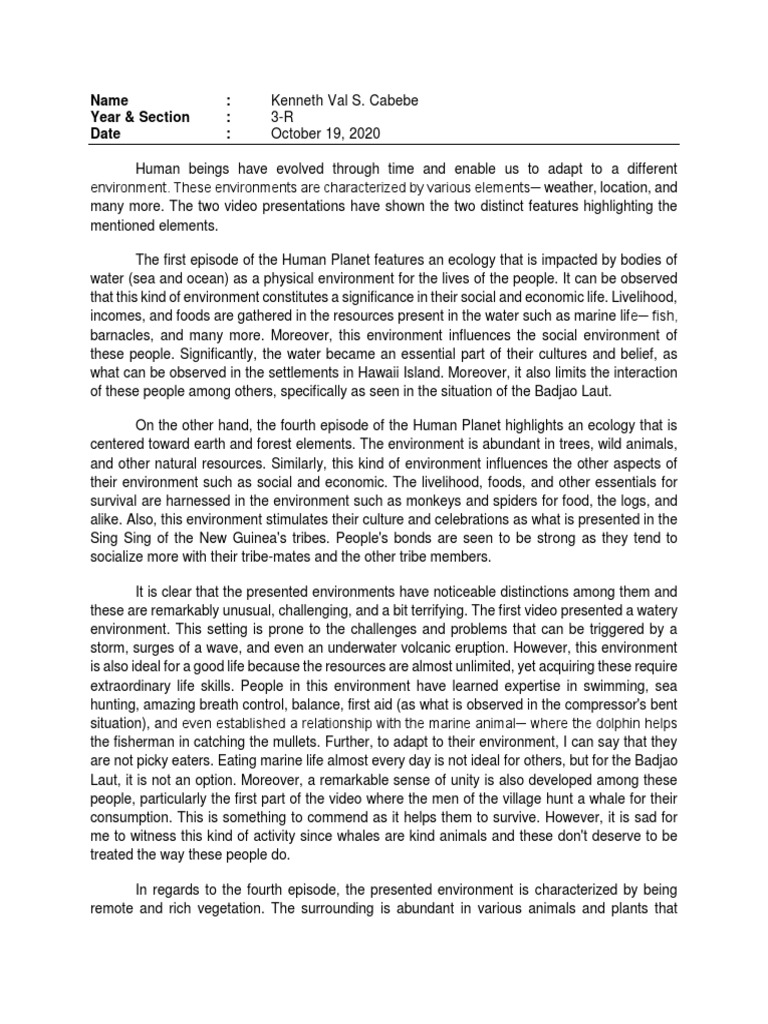 human's capacity to adjust in different environments as well as to their responses toward their