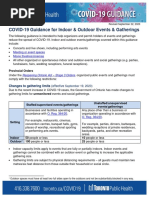 Ceremonies and • Indoor religious gatherings: Allowed for up to 10 people, plus one • Indoor religious gatherings: Allowed for up to 20 people, plus one