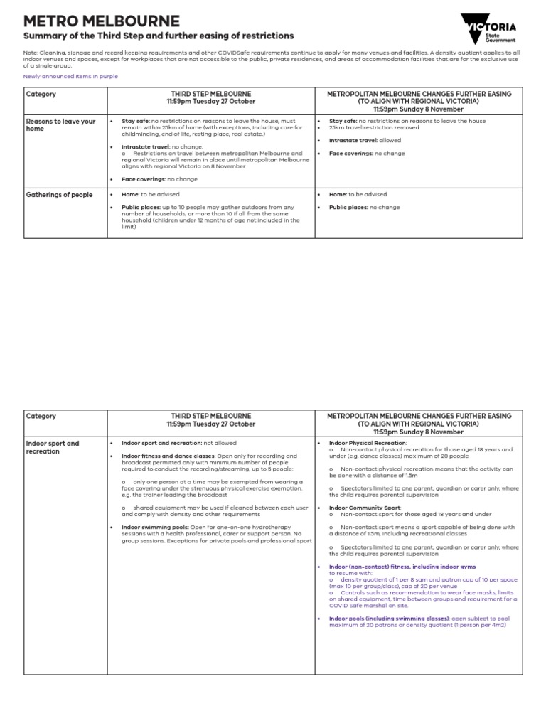 Category THIRD STEP MELBOURNE METROPOLITAN MELBOURNE CHANGES FURTHER EASING
