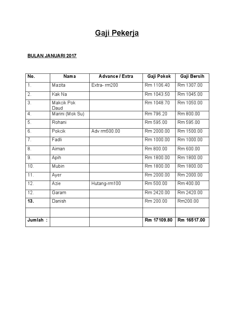 *Gaji Pekerja