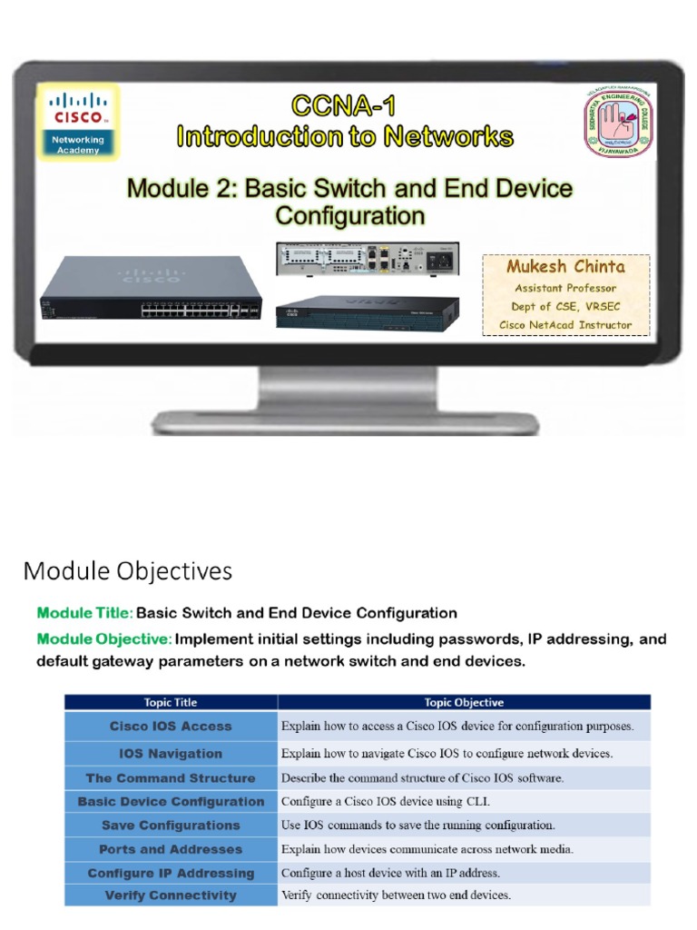 This PDF covers the concpets related to Cisco IOS, Navigating the IOS, CLI Commands, Basic device configuration and Switch SVI commands.