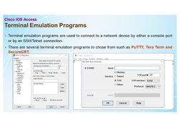 + There are several terminal emulation programs to chose from such as PuTTY, Tera Term and