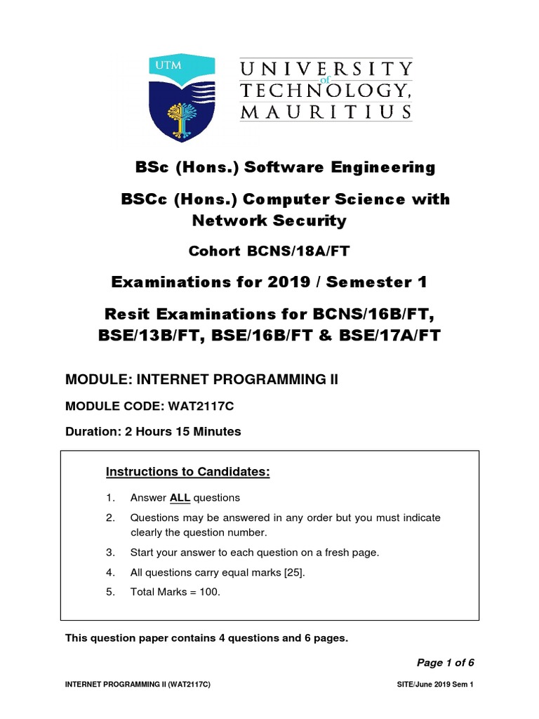 INTERNET PROGRAMMING II (WAT2117C) SITE/June 2019 Sem 1