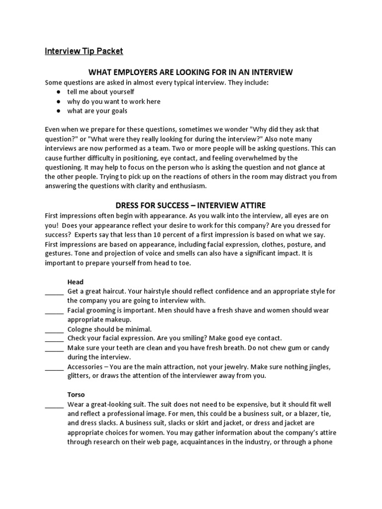 Directions: Use this checklist to prepare for your interview. If you can answer "yes" to all the