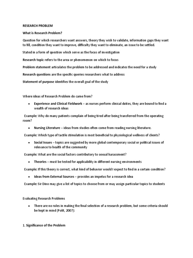 Nursing Literature – ideas from studies often come from reading nursing literature.