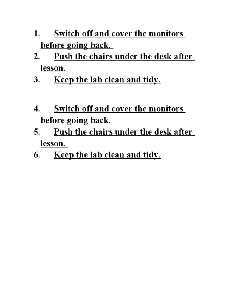 6. Keep the lab clean and tidy.