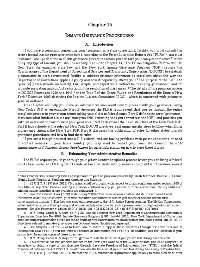 As you go through the inmate grievance procedures, it is important to bring up, from the very beginning,