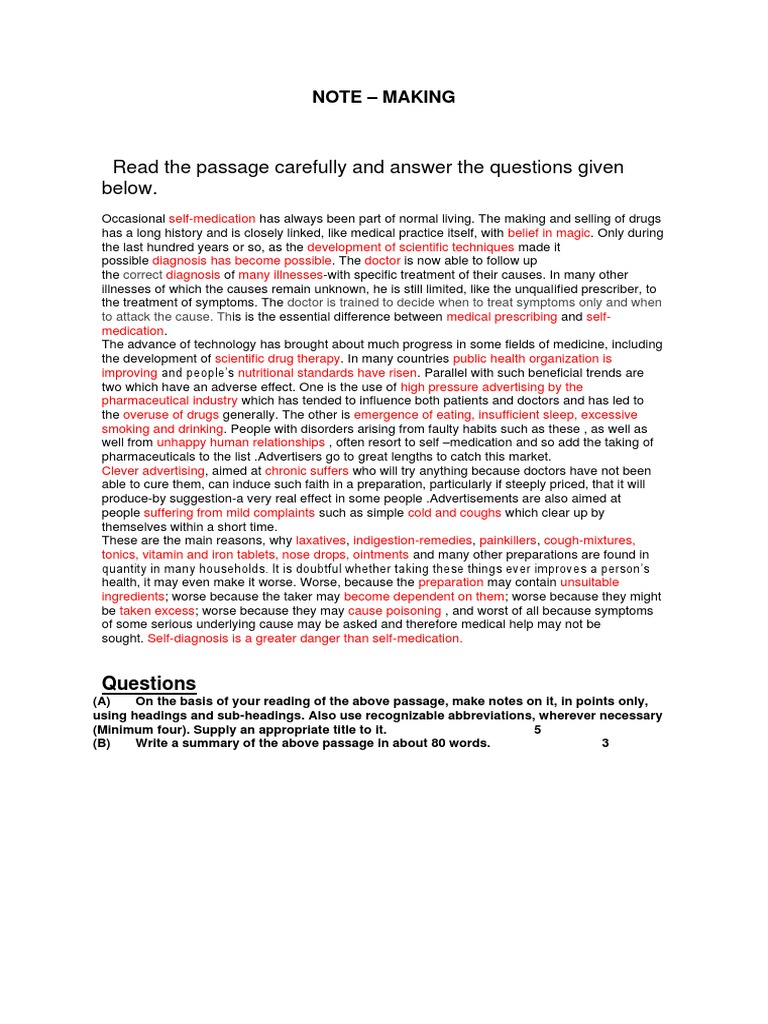 (A) On the basis of your reading of the above passage, make notes on it, in points only,
